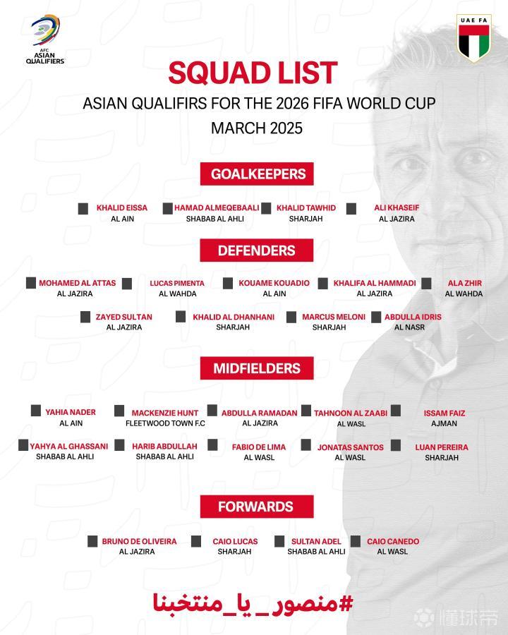 此外,阿联酋队内还有卡约-卡内多、布鲁诺、法比奥-利马、麦肯齐-亨特、夸梅-夸迪奥、卡约-卢卡斯、马库斯-梅洛尼等一系列归化球员,他们的加盟为球队的阵容增添了不少变数,也让球迷们更加期待球队在未来的比赛中的表现。